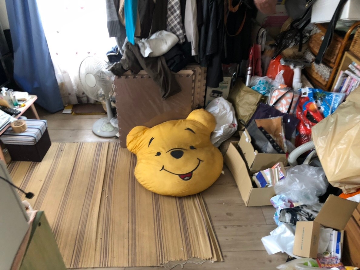お部屋には様々な家庭ごみ、古着、紙類、小物などが無秩序に積まれていました。これらを一つ一つ丁寧に分別し、運び出しました。回収は予定通りに進み、部屋の中が見違えるほどにきれいになりました。