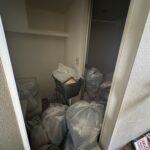 作業当日はスタッフ数名で伺い、まずは通路を確保するために玄関からリビングへ向かって仕分け作業を開始しました。燃えるゴミ、資源ゴミ、不燃物、大型家具や家電といった形で細かく分類しながら、回収専用の袋や段ボールに詰めていきます。今回は衣類や生活雑貨が特に多く、袋の数もかなりの量になりましたが、効率よく搬出できるようマンションの共用部も養生して安全対策を徹底しました。
