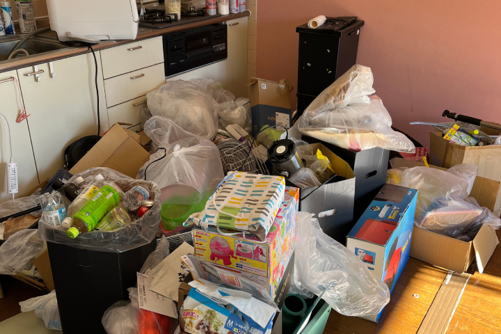 お部屋の各所に置かれていた段ボールや生活雑貨、日用品、空き容器などを、お客様と一緒に運びながらまとめていき、回収しやすい状態にしてからスタッフが順番に搬出していきました。事前に一箇所へ集めることで作業動線も良くなり、スムーズかつ効率的に回収を行うことができました。
