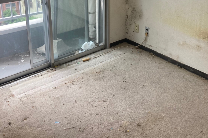スタッフ一同、迅速かつ丁寧に作業を行い、短時間ですべてのゴミを搬出。清掃後には、窓から差し込む光が部屋中に行き渡る、広々とした本来の空間が戻りました。壁や窓ガラス、フローリングも磨き上げ、清潔感あふれるお部屋に仕上げました。