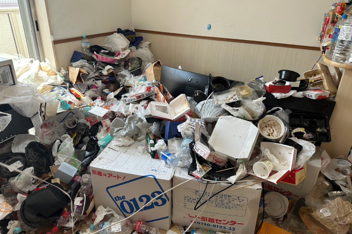 床が見えないほど蓄積した生活ゴミをリセット
